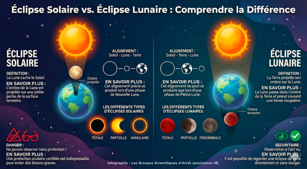 Le 12 août 2026, le ciel nous offrira un spectacle rare : une éclipse totale de Soleil visible en Espagne, et observable à près de 91 % depuis les Hauts-de-France. Pour ne rien manquer de cet événement exceptionnel et surtout pour le comprendre, nous vous proposons une série d’articles qui vous accompagneront jusqu’au jour J. Alors, en attendant le grand spectacle, rembobinons un peu et posons-nous la question fondamentale : c’est quoi, au juste, une éclipse ?