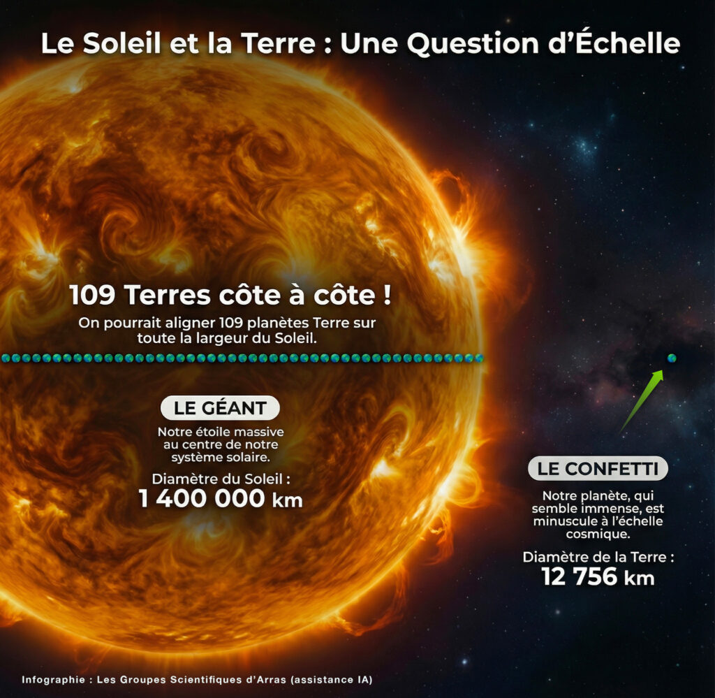 Notre étoile est véritablement le géant de l’histoire. Avec un diamètre d’environ 1,4 million de kilomètres, il pourrait contenir plus d’un million de Terres ! Situé à quelque 150 millions de kilomètres de nous (une distance que les astronomes appellent « unité astronomique »), le Soleil brille depuis environ 4,6 milliards d’années et n’est même pas à la moitié de sa vie. Cette gigantesque boule de gaz en fusion est si massive qu’elle représente à elle seule 99,8 % de la masse totale de notre système solaire. Autant dire que face à lui, tous les autres objets célestes font figure de confettis.