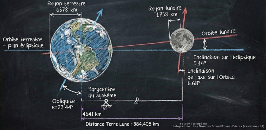 Eh bien non, et la raison est une question d’inclinaison. L’orbite de la Lune autour de la Terre n’est pas exactement dans le même plan que l’orbite de la Terre autour du Soleil, et qu’on appelle le plan de l’écliptique. Le plan de son orbite est incliné d’environ 5 degrés par rapport à l’écliptique. Cela peut sembler peu, mais à l’échelle des distances dans le Système solaire, cela a pour conséquence que, la plupart du temps, les phases de Pleine Lune ou de Nouvelle Lune se produisent à des moments où la Lune se situe suffisamment loin de l’écliptique pour que les cônes d’ombre n’atteignent pas les surface du troisième acteur en jeu.